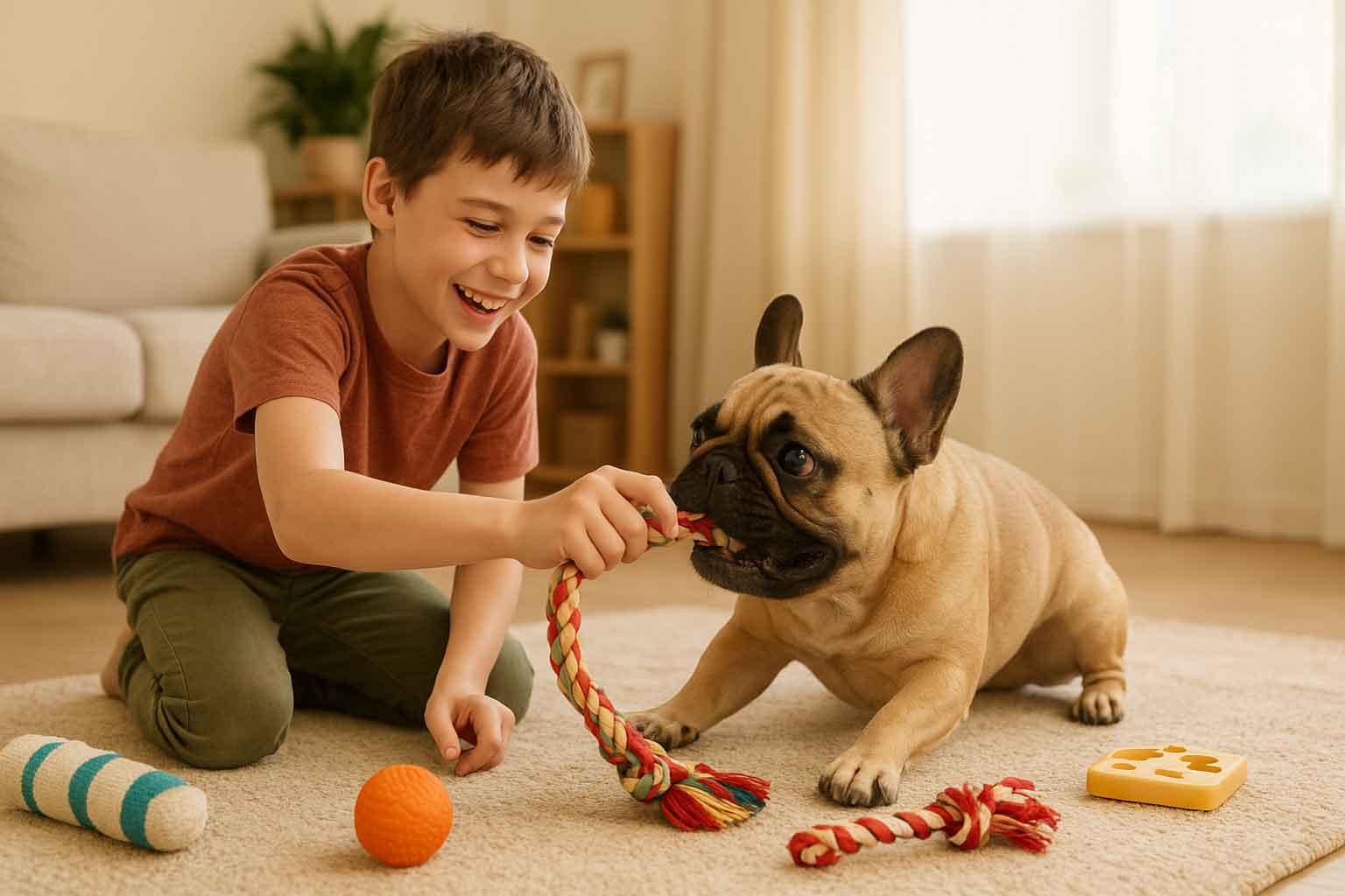 - How to Play: Grab a tug toy or a rope, and gently pull while your Frenchie tugs back.